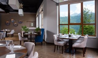 Шестиэтажное здание, окруженное величественными вершинами Кавказских гор, возвышается на самом краю склона, Номерной фонд отеля позволяет одновременно разместить более 300 человек и предлагает гостям 154 уютных номера разных категорий комфорта, рассчитанных на проживание двух-трех человек. Все комнаты оснащены техникой и укомплектованы косметическими принадлежностями. Ряд номеров подходит для отдыхающих с ограниченными физическими возможностями.