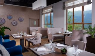 В гостинице есть спа-комплекс с большим выбором спа-процедур и термальной зоной, куда входят различные виды саун, купелей, бань. А главная особенность отеля – единственный на курорте открытый бассейн с функцией подогрева воды, работающий, благодаря этому, круглогодично.